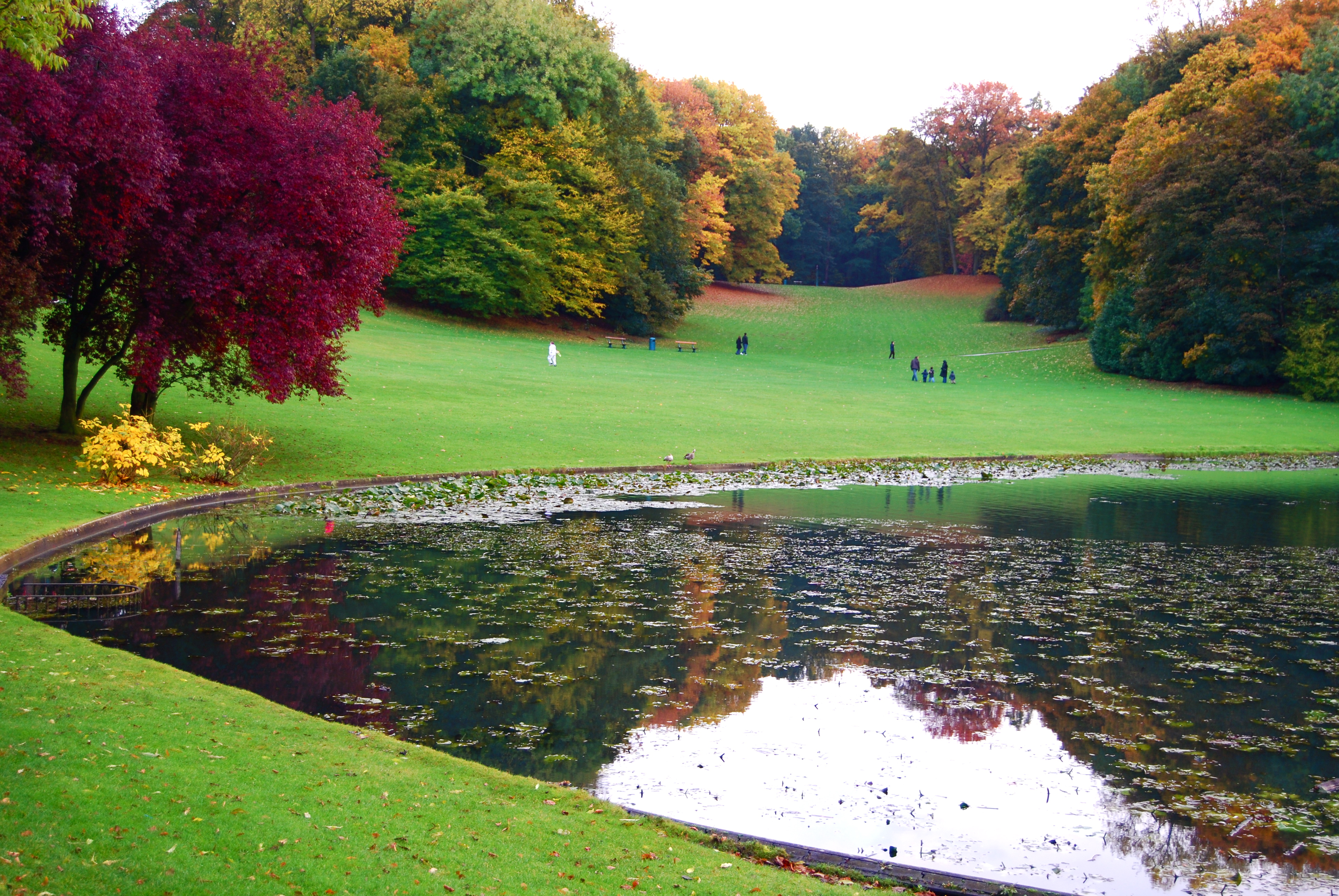 Although the slopes, hills and lakes all look quite natural this used to be a dull rather flat pasture untill king Leopold II was overlooking plans for the 1897 World Expo. Part of this expo took place at the current Jubelpark/parc cinquantenaire, part in Tervuren where the king planned a big Congo pavillion (nowadays The Afrika Museum) These two were connected by the Tervurenlaan and made way for new quarters for the Bourgeousie. Leopold II ordered to make a huge park to attract people to this part of the city. The French landscape architect Emile Lainé was in charge and changed the whole landscape. The huge amounts of sand digged out were used to construct the railway next to the park (now a lovely green walking and bike path). The works took 3 years and in 1899 the park was open to the public. In the 60’s they added some tennis courts and other sports infrastructure, that from the second half of this year will be finally open to the general public.