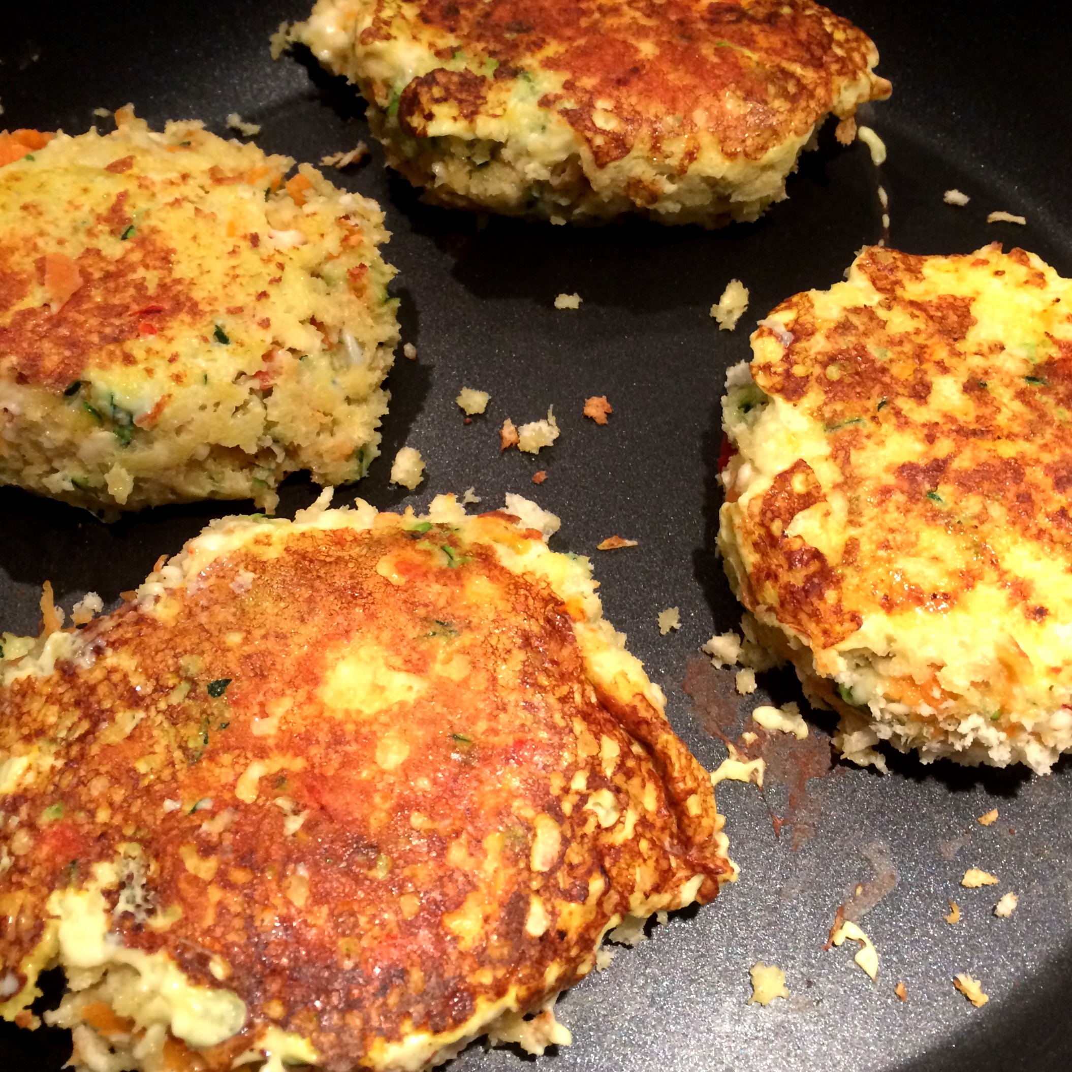 Use your hands to make patties, don’t worry if the batter feel a bit lose, just be careful when handling them and you’ll be fine. Carefuly pat the patties with panko and fry on medium high heat i canola oil until crispy and golden brown. Put in an oven proof pan and bake the patties for about 10-15 minutes on 390 degrees Fahrenheit or 200 degrees Celsius.