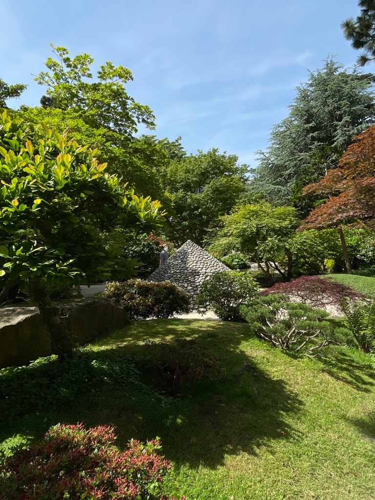 After Albert went back to Japan in 1908 he added a second part of the Japanese garden and a Chinese alpine garden. These parts completely disappeared over time and was replaced between 1988 and 1990 by a contemporary garden by landscape designer Fumiaki Takano. The beautiful red bridge, an old Himalayan ceder and a weeping beech links to the lost gardens. Large part exist of a large water element representing the life of Kahn. A stone cone spring, symbolizing his birth , flows into a large pond, symbolizing the fullness of his life. Pebble walls stand for the great amount of his achievements. The water flows further through a rough rocky part, representing the stockmarket crash that brought Albert to ruin…and at the end the water flows down in the spiral of death. It’s really a calm tranquil place to wander around. Let’s hop to another part of the garden.