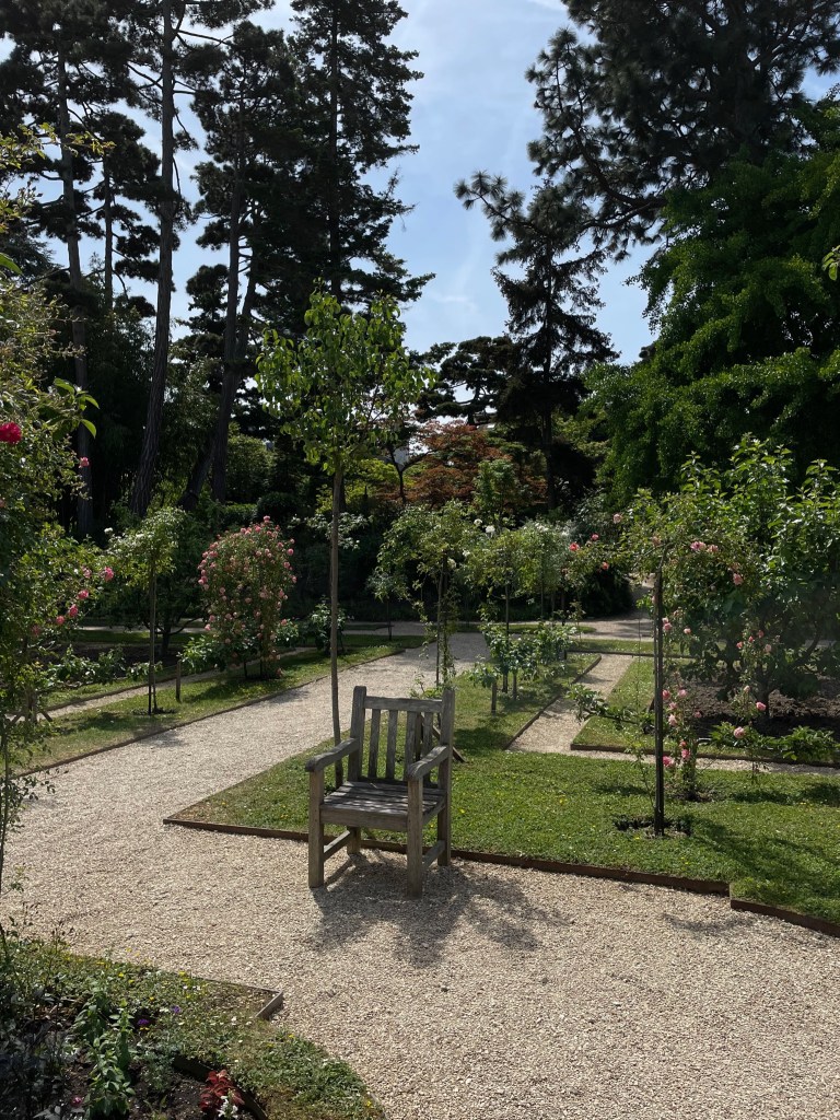 Here we are on completely different esthetic, a traditional geometrical classical French garden. For this garden Albert hired Henri and Achille Duchêne. In front of a beautiful glasshouse a manicured lawn framed with montone flower beds is center stage, from here you walk in two other squares. A beautiful rose garden / orchard. Where fruit trees in different forms are beautifully combined with roses. Strictly contained, but at the same time also quite natural. One step out of the geometric squares and you enter in the different forest zones.